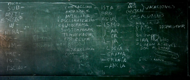 Des del nostre pupitre, des de “Desalumnologia”, veiem tot el que hi ha fora, el paisatge a través de la finestra, el centre comercial, les muntanyes, les cases, el cel. La realitat exterior. La vida quotidiana. I com està molt alt, veiem molts llocs que encara no coneixem, on encara no hem estat mai.