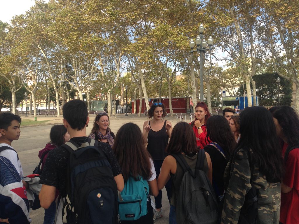 Dimecres 15 de Novembre 2017, van venir dues representants del departament educatiu del Museu Nacional  a visitar el nostre institut. L’objectiu era fer una visita guiada i intentar que es qüestionessin el que nosaltres estàvem dient, és a dir, fer una visita poc convencional. La nostra idea era disfressar l’escola amb un ambient de molt més “bon rotllo” del que realment és entre el professorat i nosaltres, els alumnes. Per fer-ho vam haver de pactar amb els professors per a què ens seguissin el fil. A classe hi ha companys que fan teatre i això ens va ajudar a realitzar la performance.