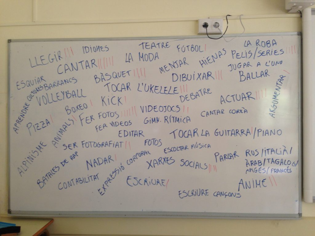 També vam aprofitar per conèixer-nos millor entre tots, compartint els nostres gustos, habilitats… fent així una pluja d’idees que més endavant ens serà d’ajuda pel nostre projecte.