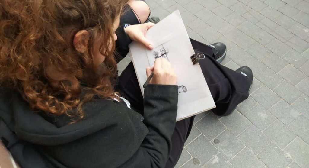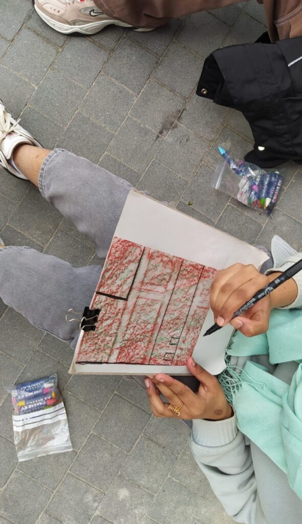 Per començar ens van explicar que tendríem que dibuixar i fer un frotage dels llocs que anàvem a visitar mentre ens explicava un dels nostres companys com era abans aquella zona.