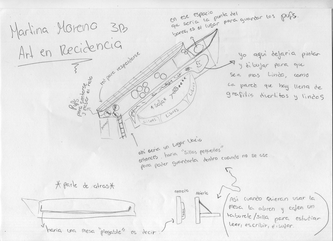 La nostra obra va començar amb una maqueta i moltes il·lusions. Quan vam començar a pensar la nostra peça final, vam fer una sessió amb una pluja d’idees de com volíem que fos i les vam anar apuntant a la pissarra. Volíem que fos còmode, que hi poguéssim dormir, escriure… que fos útil, real i alhora que fos factible.