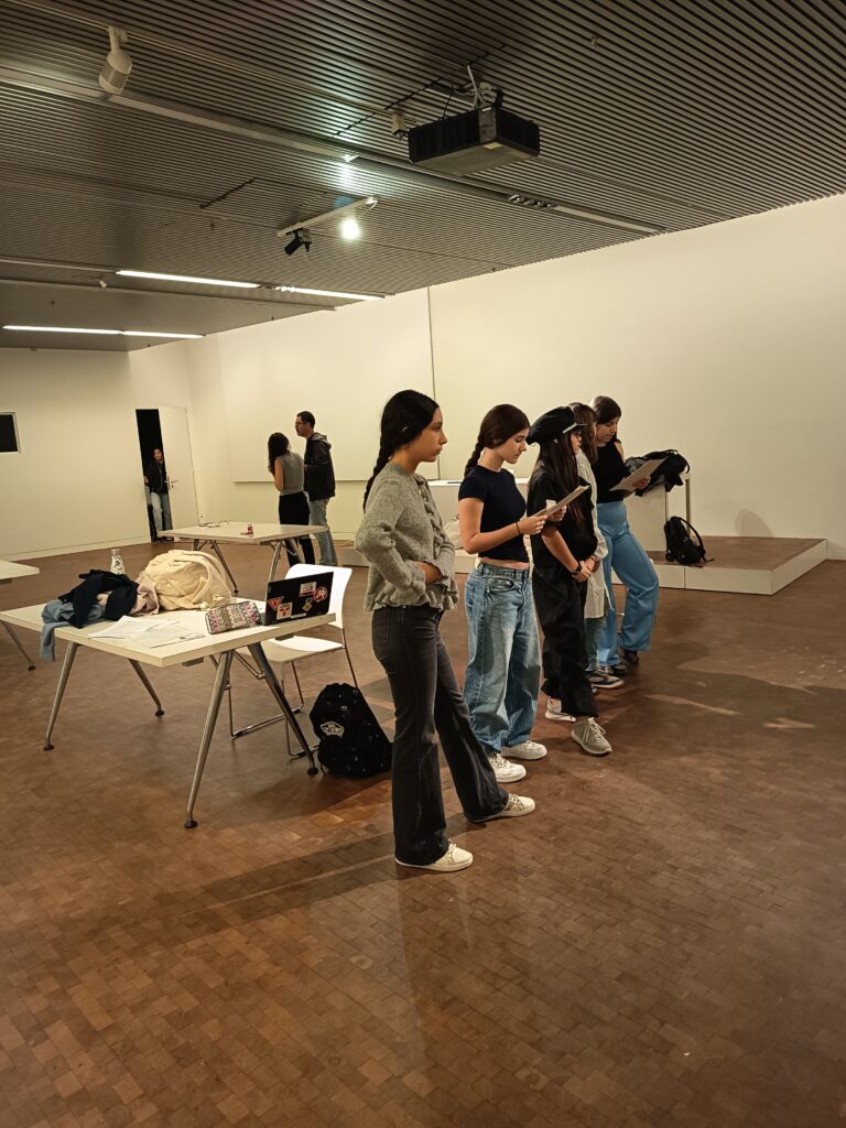 Jo crec que en l’espai que estem treballant està molt bé perquè és un espai molt còmode i sense tant soroll també el que m’agrada és que és una habitació que està buida llavors tenim molt d’espai per assajar. I sobre l’assaig, m’agrada l’obra que estem fent.