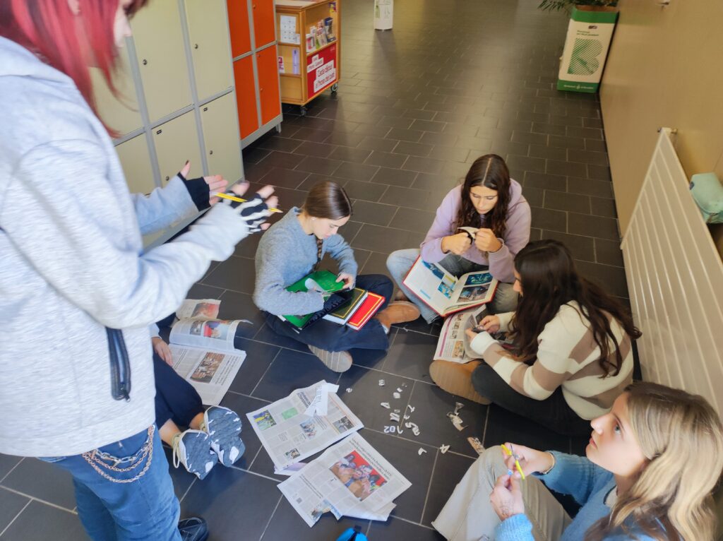 Después de eso nos pusimos ¡manos a la obra! Empezamos a coger material, nos dividimos en grupos y nos decidimos por ir al passillo de abajo para tener mas espacio.