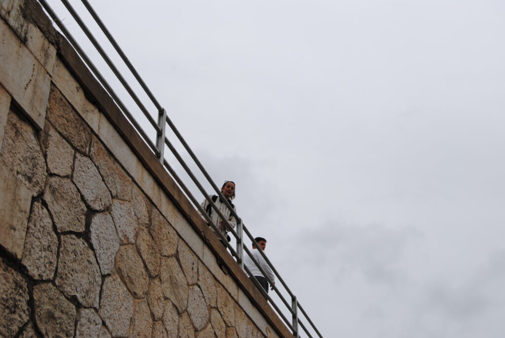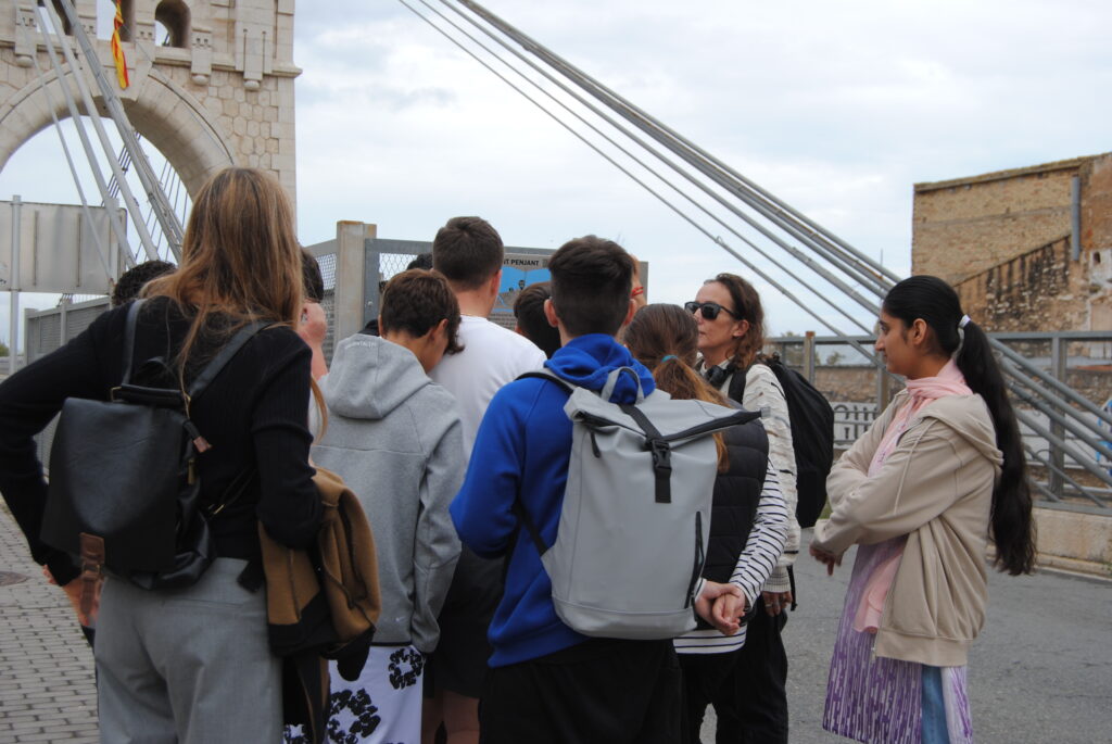 L’Alba ens va explicar la història del pont durant la guerra civil. Ens va contar que hi havia una dona que portava llet des de l’Aldea fins a Amposta, i, justament quan creuava el pont, un avió va tirar una bomba que va fer esclatar el pont amb la lletera creuant-lo. La lletera portava un fanalet que va delatar als enemics on estava el pont.