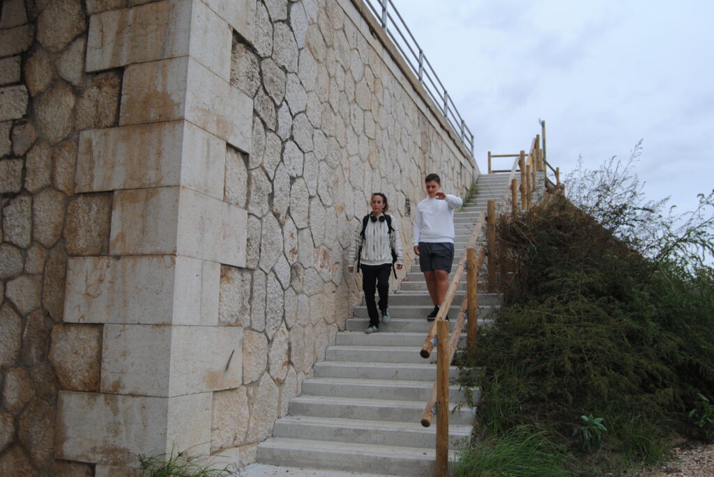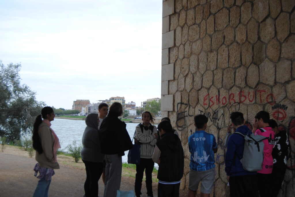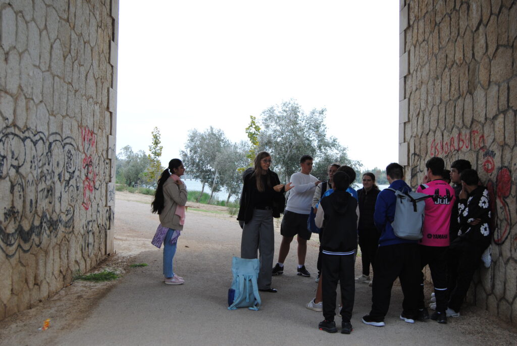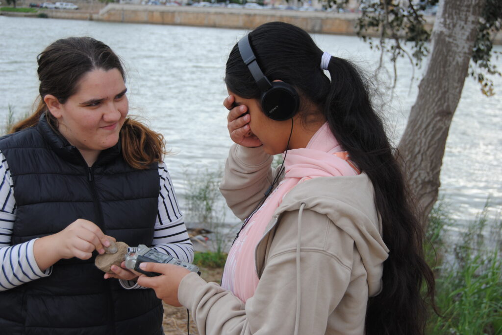 Després, ens vam dividir en tres grups i ens van repartir els micròfons ensenyant-nos com funcionaven. Havíem de grabar diferents sons, un del grup anava amb els ulls tapats i els altres dos el guiaven. Vam gravar sons com a ara les fulles seques, el so de les pedres, del vent, de l’aigua i tot allò que ens semblava un bon so. Durant el trajecte anant a l’institut vam veure una placa amb el símbol de la conxa del camí de Sant Jaume, que indica que per allí passa el camí que va cap a Santiago de Compostela.