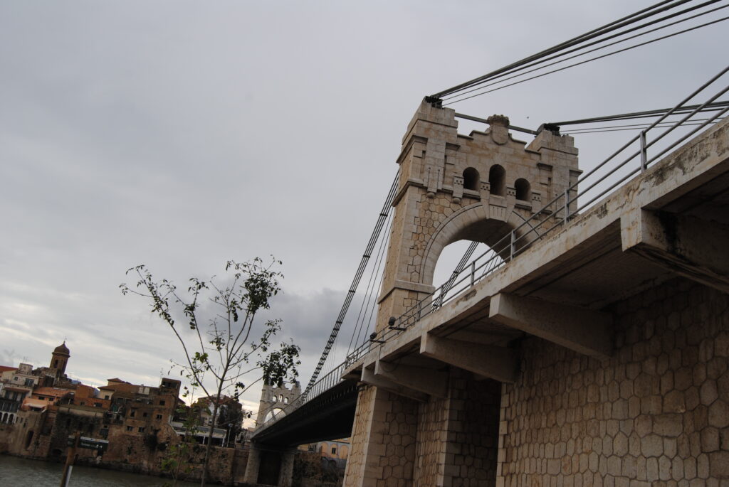 El dia 29 d’octubre vam anar al pont penjat d’Amposta. Quan vam sortir del centre a les 13:00h, hi havia núvols, no volíem que plogués. Vam arribar fins al Pont. Allí vam llegir la història del pont que està escrita a un plafó que hi ha abans de creuar el pont. Després vam passar el pont i vam baixar a la zona de pícnic que hi ha sota el pont. Allí ja va començar a espurnejar.