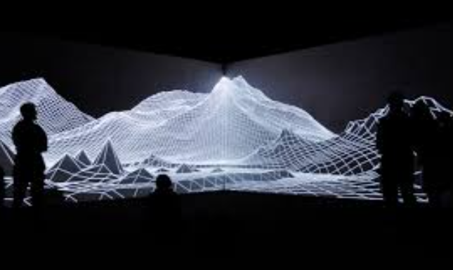 Iker i Hodaifa: Múltiples pantalles amb visuals d’aigua, dinàmiques naturals, textures i colors líquids. És una instal·lació audiovisual on el so i la imatge generen una experiència immersiva que evoca paisatges en transformació. Atmosfera fosca, línies lluminoses que formen formes abstractes al voltant de l’espai. Aquest estil juga molt amb l’abstracció, el contrast entre llum i foscor, moviment i so minimalista. Aquest tipus de treball juga amb la relació entre públic, espai i tecnologia audiovisual.