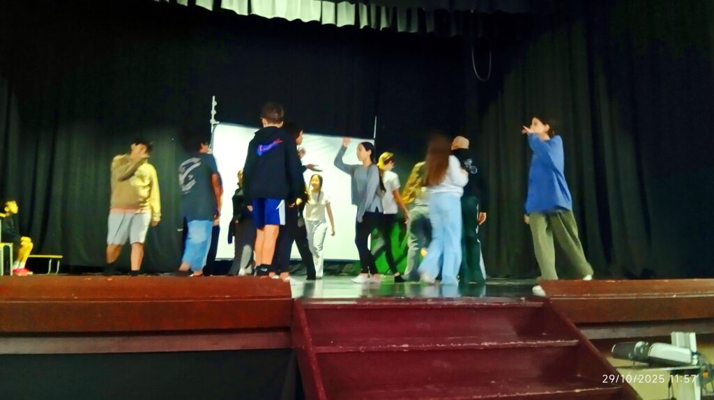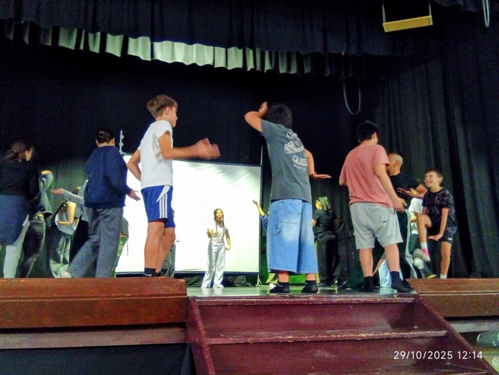 «Fueron 2 sesiones muy divertidas y movidas. Nos enseñó a bailar con  coordinación y equilibrio. A tomarnos en serio el teatro, a expresar las cosas sin palabras. Nos enseñó diferentes bailes, por ejemplo un baile con la canción de la Tarantela, una canción procedente de Italia. A como seguir el ritmo y compás de la música, sin adelantarse ni retrasarse; a ir todo/as igual/es. Juegos a diferentes juegos, por ejemplo, el juego del espejo, que es básicamente, copiar lo que hace la persona ( tu pareja) que tienes enfrente. Jugamos a mantener el equilibrio con una moneda en cada mano, sin que cayera, y a un  juego de enseñar lo que había en tu habitación sin hablar. Yo, sinceramente, me lo pasé muy bien, me reí mucho con mis compañero/as». Elna