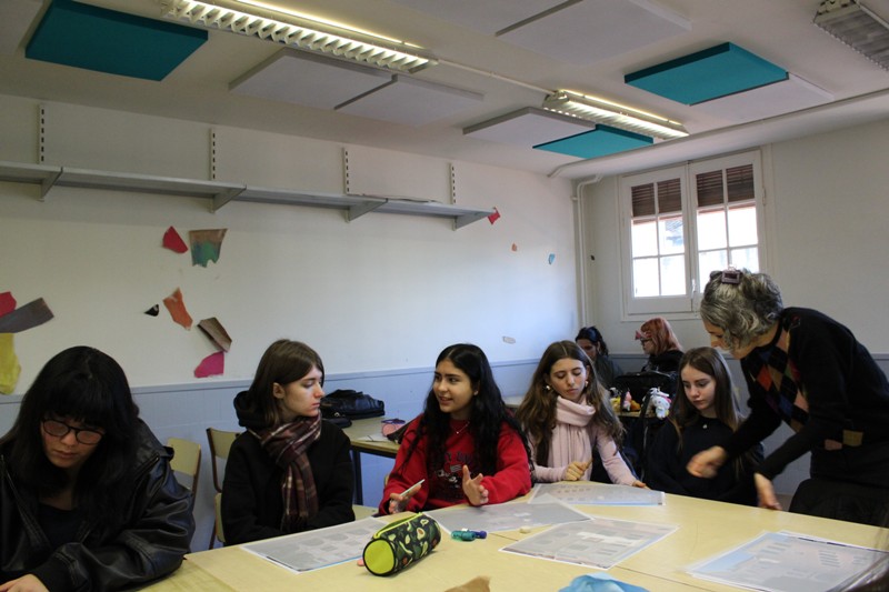 Després de la sessió oberta comença una nova etapa vinculada a la recerca iniciada des del primer dia. La reflexió compartida després de la presentació al claustre dóna lloc a una línia de treball centrada en la idea d’habitar l’espai a través del color. L’objectiu és intervenir un dels espais de la Fundació Joan Miró mitjançant l’ús de teles, des d’una mirada poètica i, alhora, connectada amb el concepte de cura: una acció que no busca només transformar visualment l’entorn, sinó tenir-ne cura, escoltar-lo i vincular-se a ell des del respecte i la sensibilitat. A partir d’aquestes reflexions, identifiquem quins dels espais podem intervenir de la Fundació, imaginem quina forma pot tenir aquesta acció artística i explorem diferents tècniques que poden constituir l’artefacte: costura, collage, tenyit…