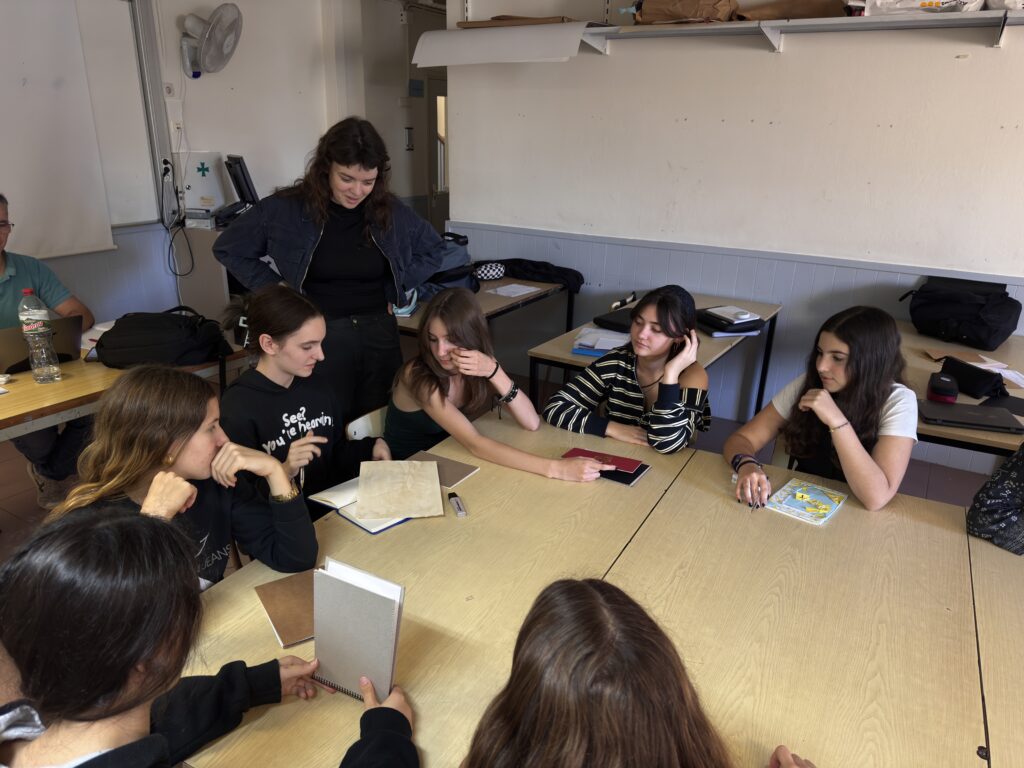 El passat dimarts, els alumnes de 4t d’ESO de l’optativa d’Expressió Artística, vam poder gaudir d’una sessió de dues hores amb l’Helena Civit. Vam iniciar seient tots junts al voltant d’una gran taula, i després, cadascun, de manera individual, va presentar la seva llibreta d’artista a la resta del grup. La majoria de gent no les havia acabat encara, però tot i estar en mig del procés creatiu, tenien una aparença molt original, creativa i única.